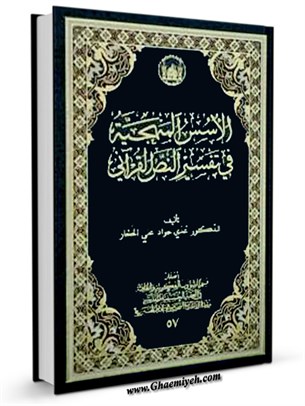الأسس المنهجية في تفسير النص القرآني / تأليف: عدي جواد علي الحجار؛ [تقديم اللجنة العلمية، محمد علي الحلو]. – كربلاء: العتبة الحسينية المقدسة، قسم الشؤون الفكرية والثقافية 1433ق. = 2012م.