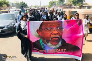 ويحملون صور زعيم الحركة الاسلامية الشيخ ابراهيم الزكزكي الذي تعتقله السلطات منذ أكثر من ثلاث سنوات دون وجه حق.