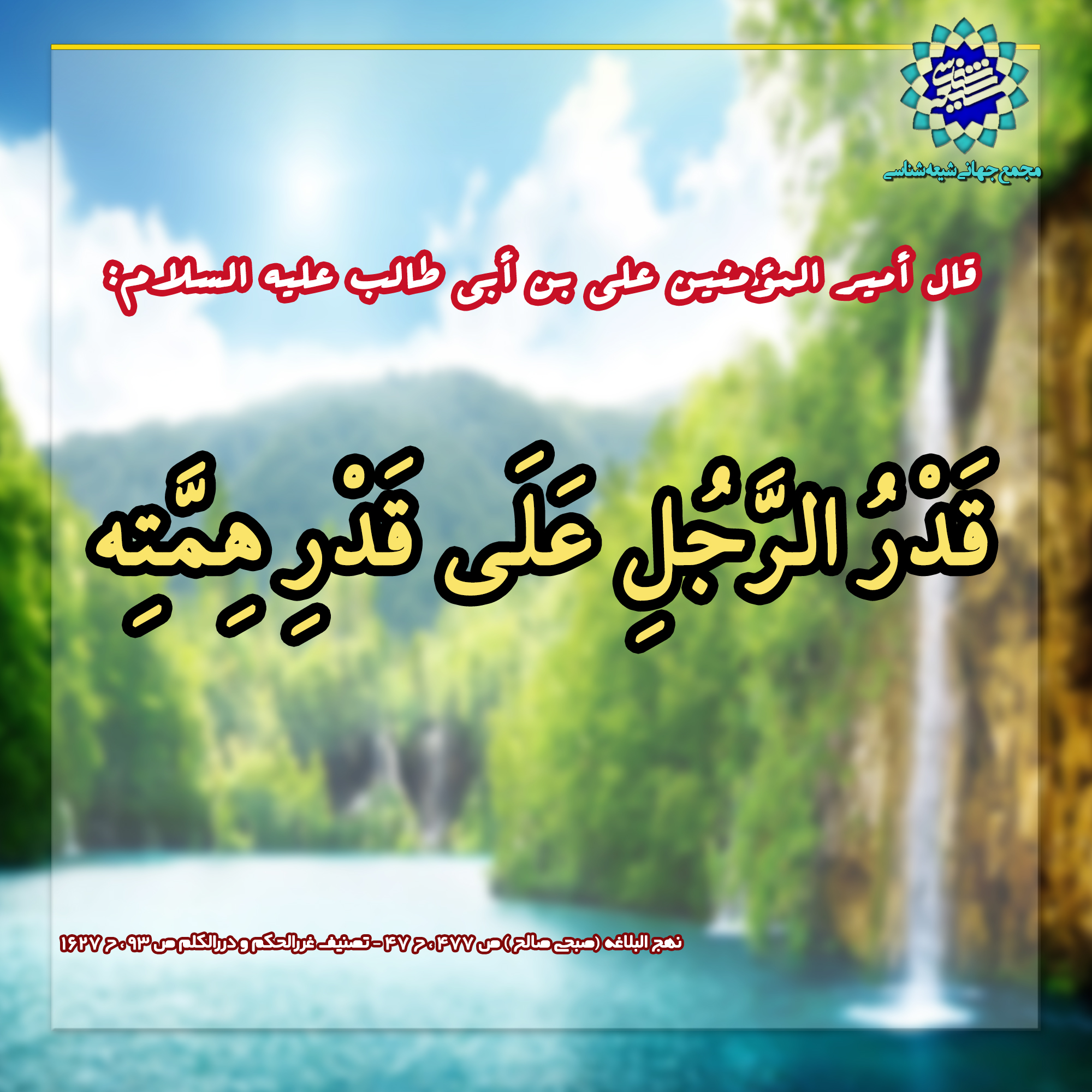 حديث اليوم قدر الرّجل علی قدر همّته By منتظر Last updated ديسمبر 5, 2020 0 Share قدر الرّجل علی قدر همّته قال أمیر المؤمنین علي علیه السلام: قدر الرّجل علی قدر همّته http://shiastudies.com/ar/ 0 Share FacebookTwitterGoogle+ReddItWhatsAppPinterestEmail