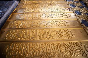 – الشريط الكتابيّ الشعريّ الذي خُطّت عليه أبياتٌ من قصيدةٍ للشاعر علي الصفار الكربلائي، ومطلعُها: (هي زينبٌ بنتُ الهدى .. بحرُ المكارمِ والندى)، وهذا الشريطُ وسيكون طلاؤه كاملاً بالذهب الخالص “.