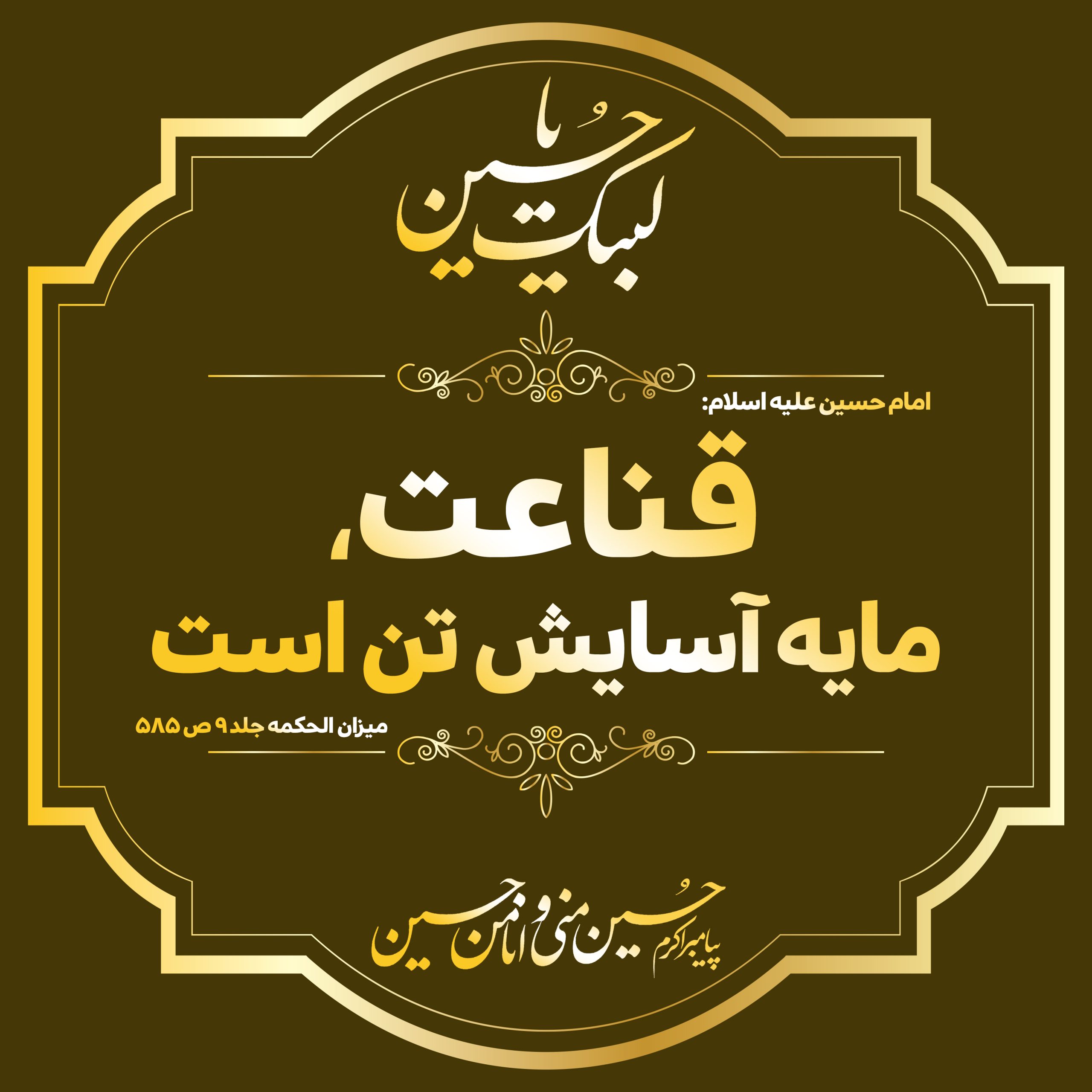 حدیثی از امام حسین علیه السلام . . حضرت میفرماید: قناعت، مایه آسایش تن است. میزان الحکمه،ج۹، ص۵۸۵ <a href="http://shiastudies.com">shiastudies.com</a> <h5>حدیثی از امام حسین علیه السلام حدیثی از امام حسین علیه السلام</h5>