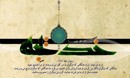 امیر مؤمنان در «خطبه قاصعه»می فرمایند : روزی که رسول خدا به پیامبری رسید،نور اسلام به هیچ خانه ای وارد نشد جز به خانه پیامبر وخدیجه که من سومین نفرآنان بودم که نور وحی و رسالت را می دیدم و عطر نبوت را استشمام می کردم .۸